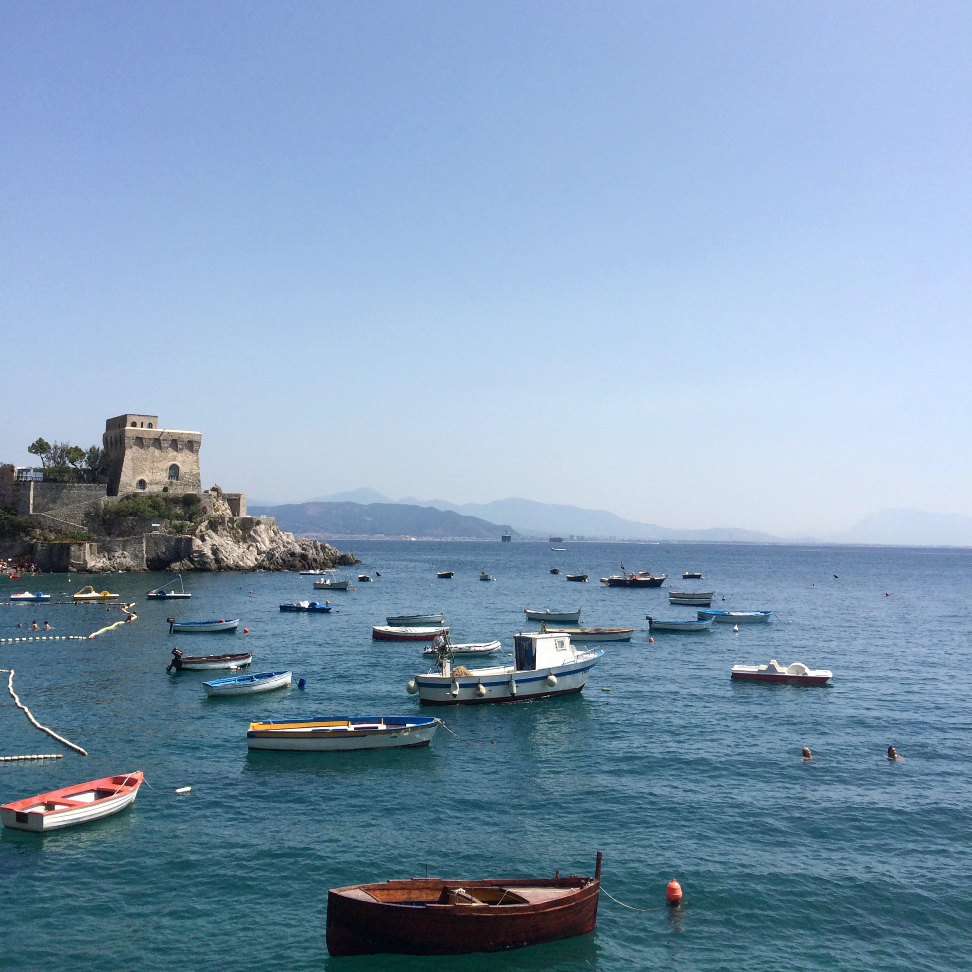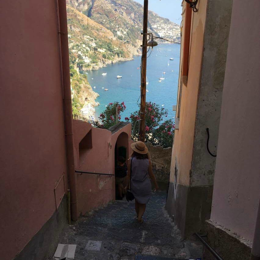 Mes pakrante važiavome nuo Salerno iki Sorrento miestelių. Pakeliui sustojome keliuose miesteliuose išbandyti jų paplūdimių (dauguma mokami) ar pasivaikščioti ir užkąsti. Labiausiai įstrigo Positano laipteliai bei puikus paplūdimys ir iš Ravello atsiveriantys vaizdai.