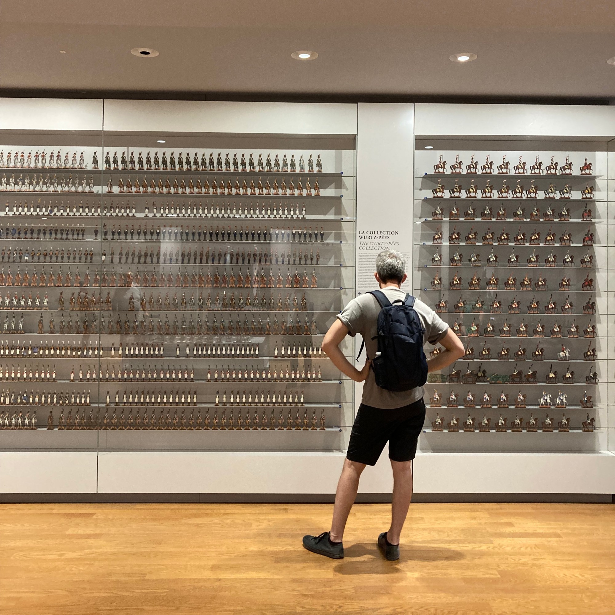 Pėsčiomis pasiekėme ir pirmąjį didesnįjį kelionės tikslą – Karo muziejų, įsikūrusį Invalidų rūmuose. Muziejaus ekspozicija didžiulė, tad mes nusprendėme, kiek laiko galime jam skirti ir ganėtinai skrupulingai šio limito laikėmės. Kadangi prancūzai per ilgą savo šalies gyvavimo istoriją buvo įsivėlę tikrai ne į vieną karinį konfliktą – parodyti ir papasakoti jie tikrai turi ką. Mes praėjome tas muziejaus sales, kurios rodė Napoleono Bonaparto gyvenimą, taip pat Pirmojo ir Antrojo pasaulinių karų ekspozicijas. Man didžiausią įspūdį paliko puikiai išlaikytos skirtingose pasaulio vietose misijas vykdžiusių karių uniformos.