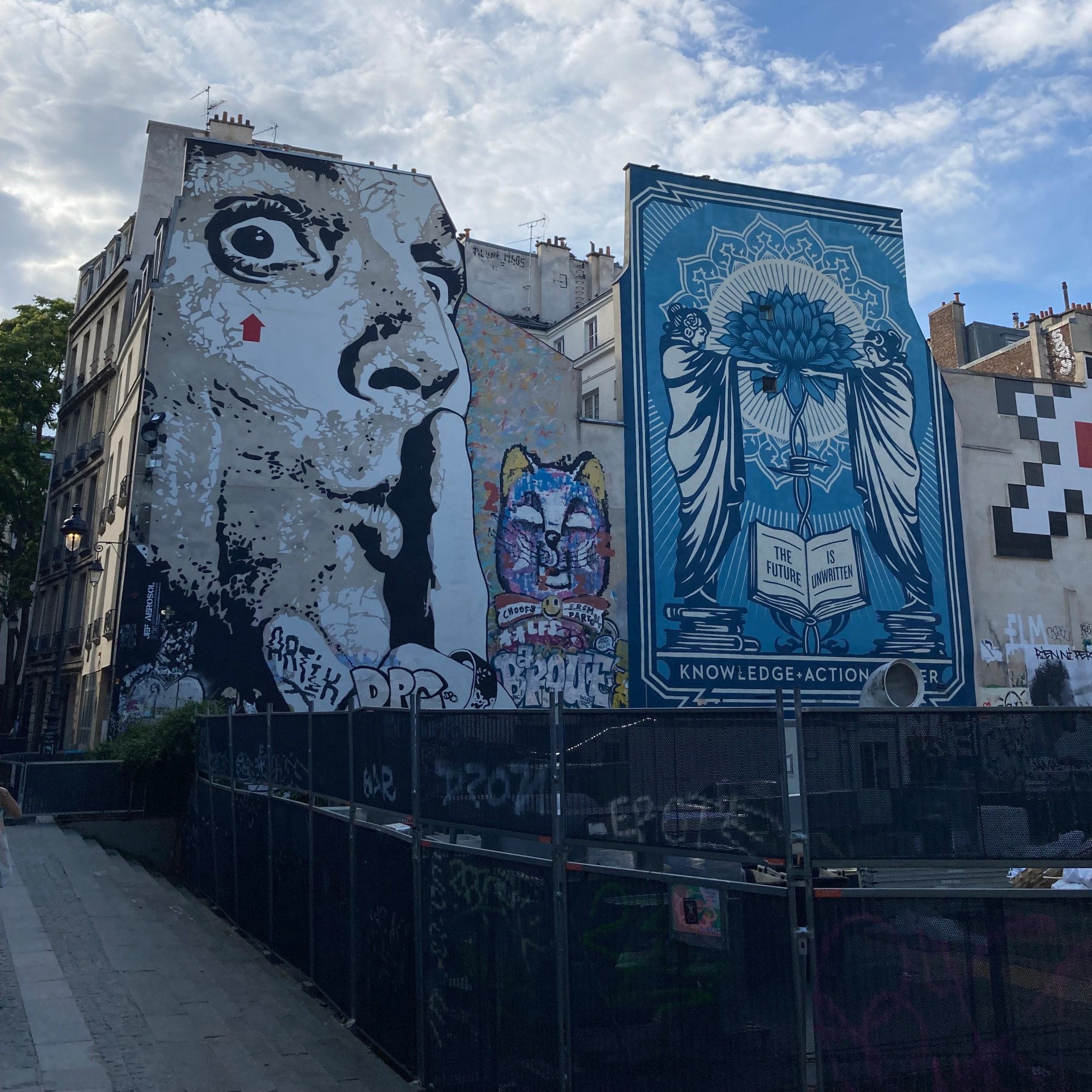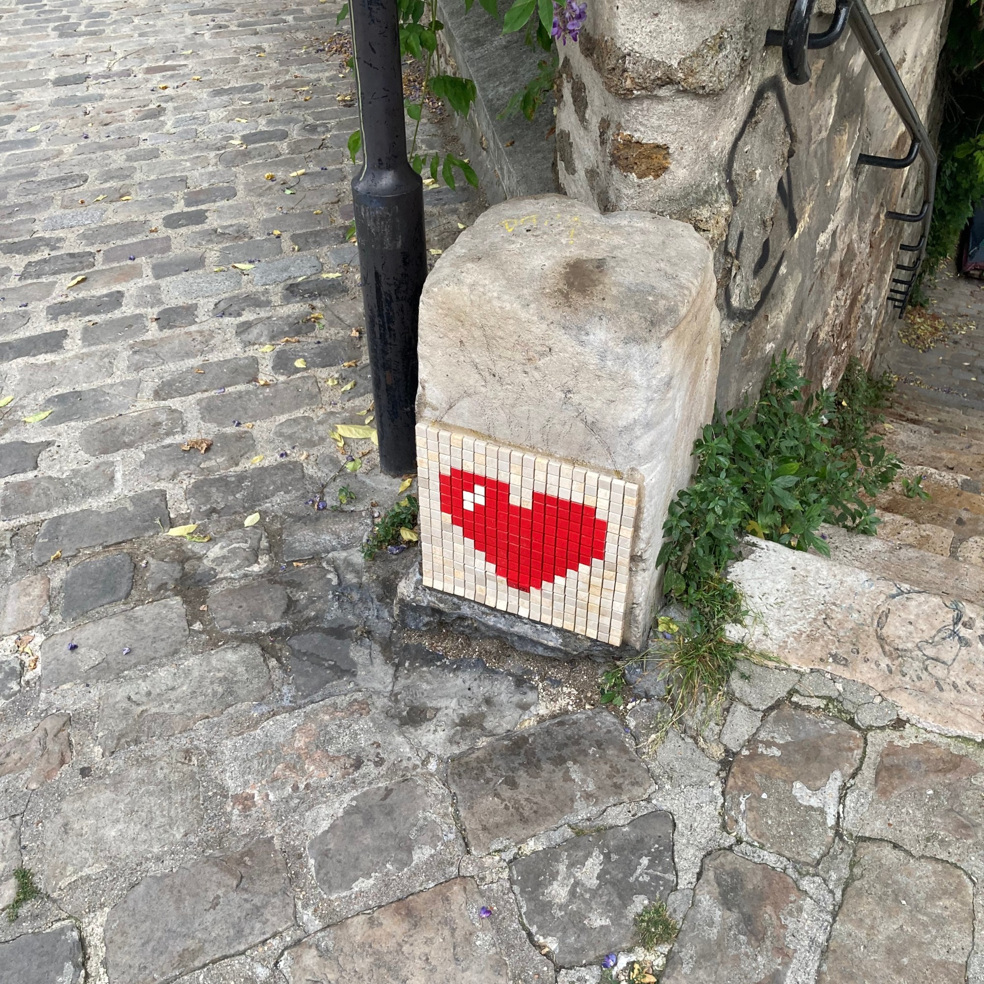Marais šeštadienio popietę buvo pilnut pilnutėlis. Place des Vosges aikštėje, kuri yra seniausia suplanuota tokia aikštė Paryžiuje ir ankstesnėse kelionėse buvo palikusi man didžiulį įspūdį, ant žolytės piknikavo ar aplinkinėse kavinėse sėdėjo šimtai žmonių. Eilės rikiavosi ir prie vietinių parduotuvių. Tad kiek pasivaikščioję ir pasigrožėję ganėtinai siauromis rajono gatvelėmis bei jas puošiančiais gatvės meno kūriniais vėl sėdome į metro ir keliavome į Monmartrą ieškoti vietos vakarienei.