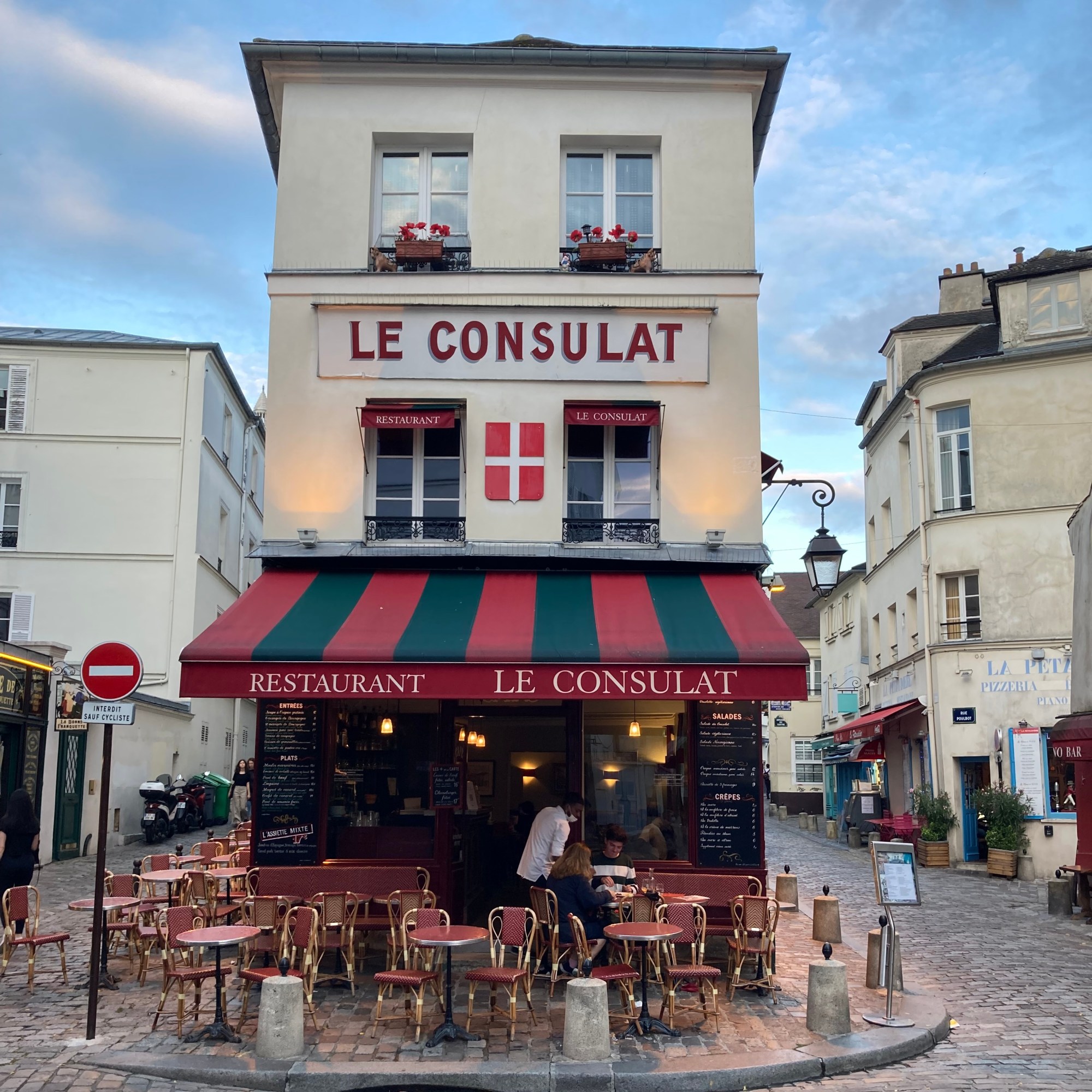 Kol rinkomės kurioje iš daugybės Monmartro kavinių prisėsti, kad būtume kiek toliau nuo pačių turistiškiausių vietų, mus užklupo smarkus lietus, tad nėrėme pro arčiausiai buvusios užeigos duris. Ir visai neblogai pataikėme, nes La Taverne de Montmartre gavome ir karštos svogūnų sriubos, ir ančių kepenėlių, ir pašteto, ir lengvo vyno. O galiausiai vakarą užbaigėme šampanu ant Monmartro bazilikos laiptų (gerti alkoholį lauke Paryžiuje yra visiškai legalu. Na, arba tai daro tiek žmonių, kad policija tiesiog nuleido rankas) ir pasivaikščiojimu iki viešbučio.