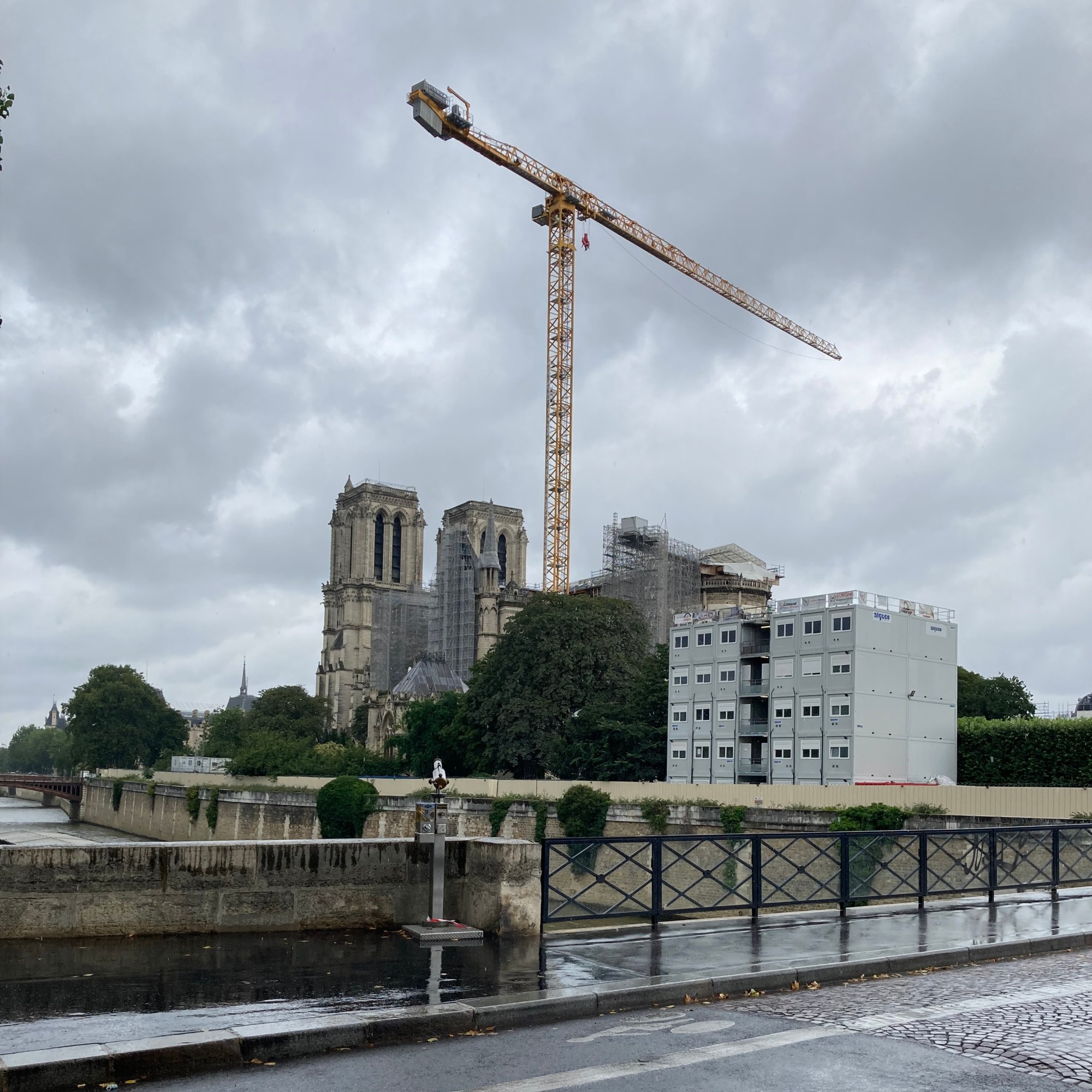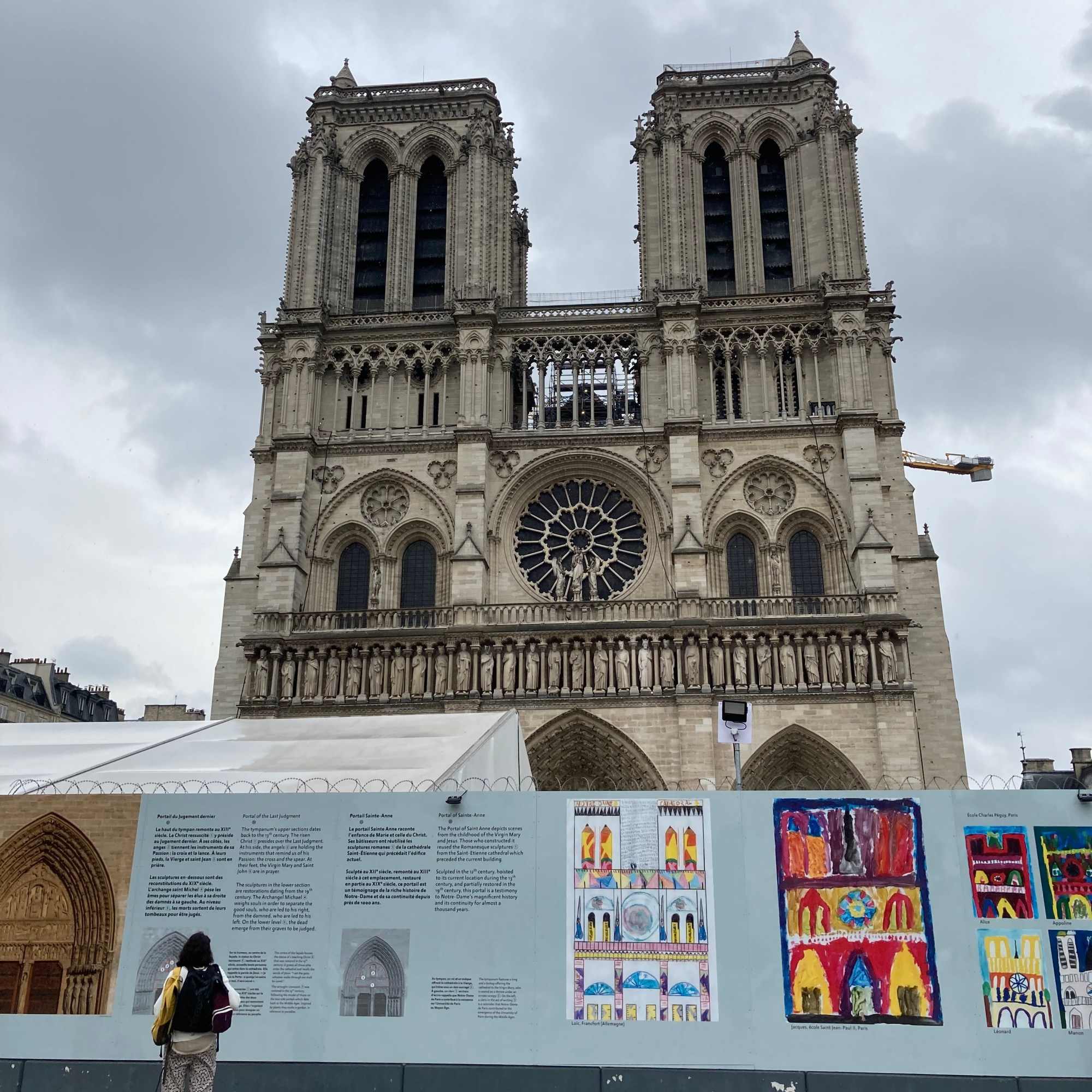 Notre Damo katedra 2019 metų pavasarį degė ir degė smarkiai. Nors nuo gaisro praėjo jau treji metai, gaisravietės valymo ir statinio sutvirtinimo darbai dar nėra pasibaigę, ką jau bekalbėti apie restauraciją ir atstatymą. Apie dabar katedroje vykstančius reikalus ir ten dirbančius žmones pasakoja nuotraukos ir istorijos, iškabintos ant teritoriją juosiančios tvoros.