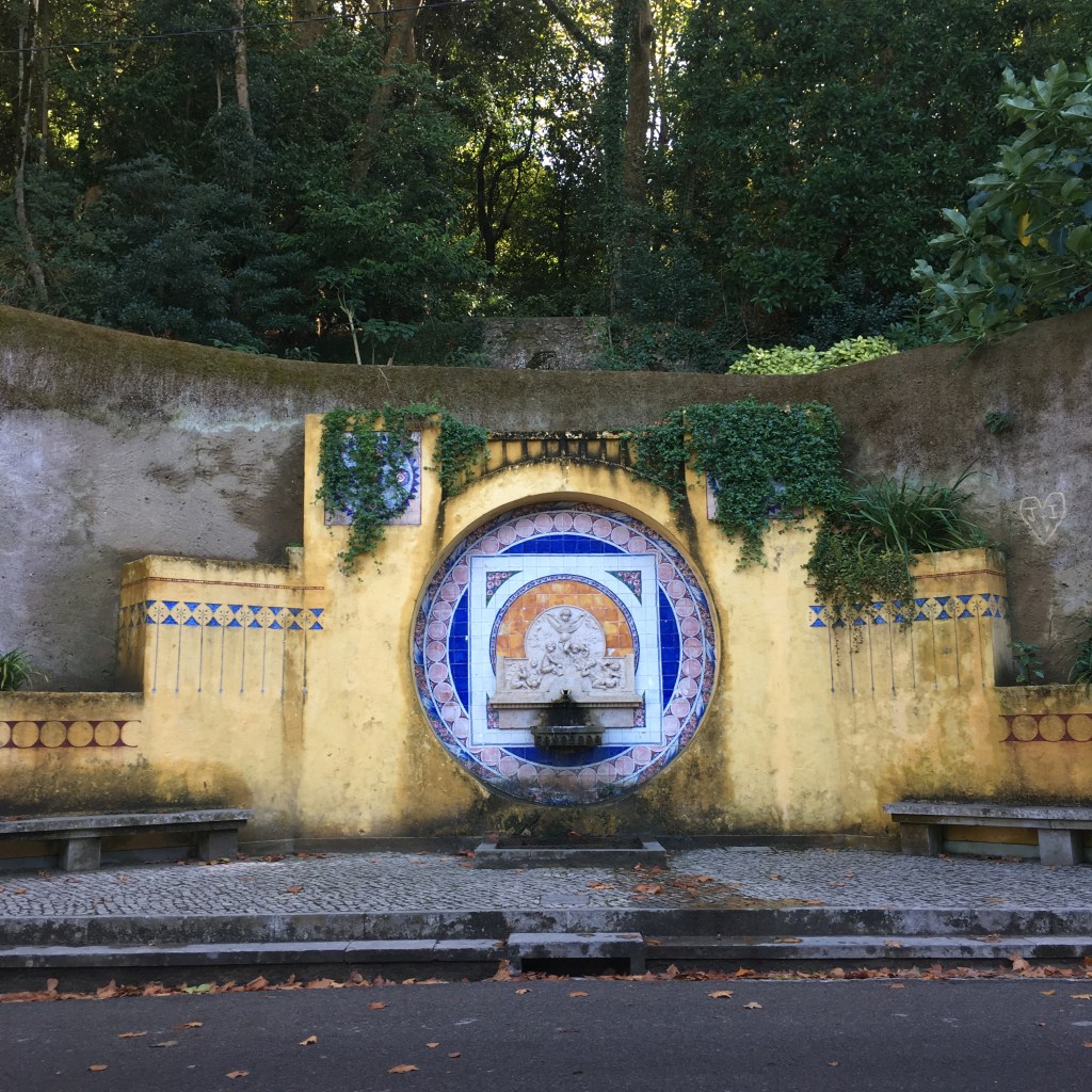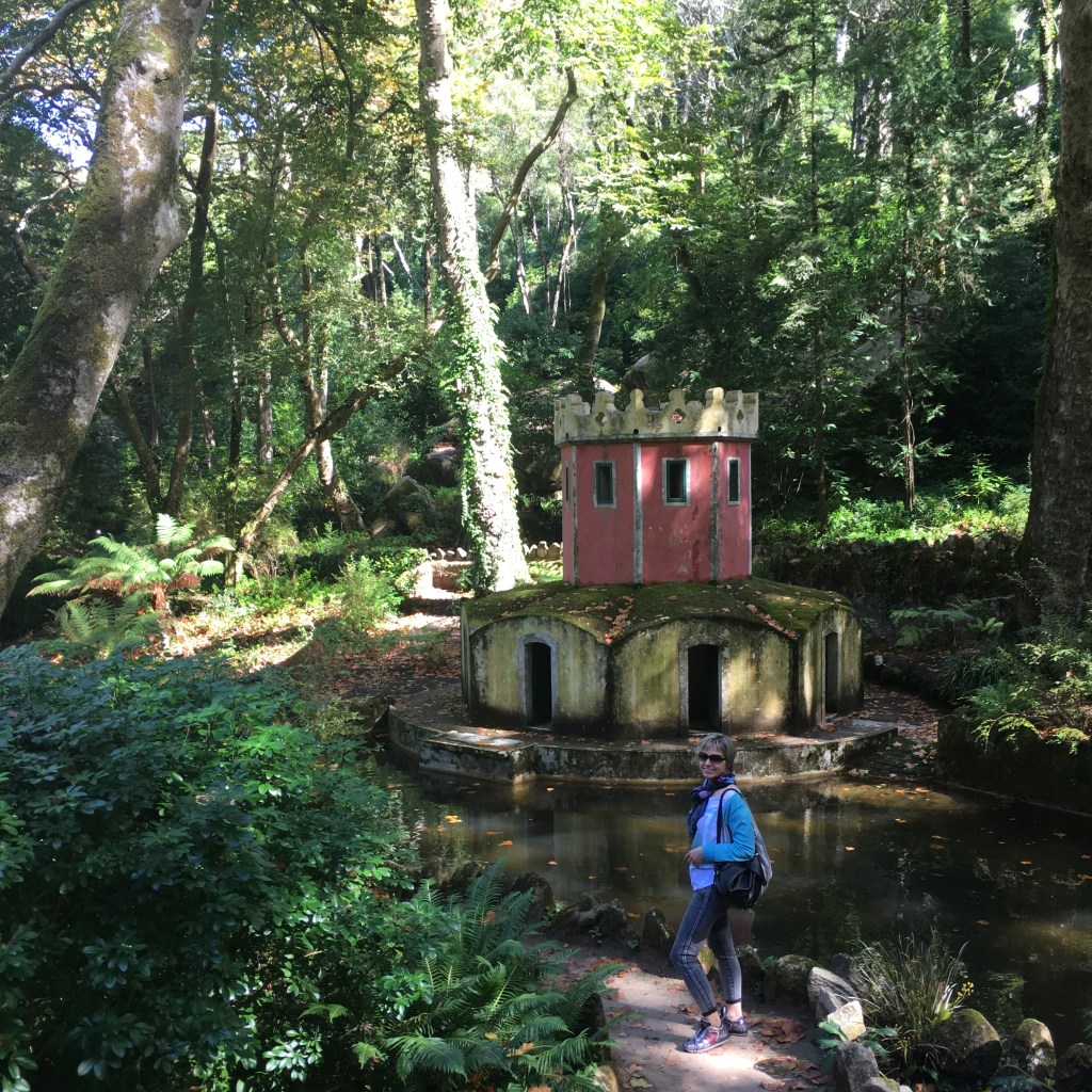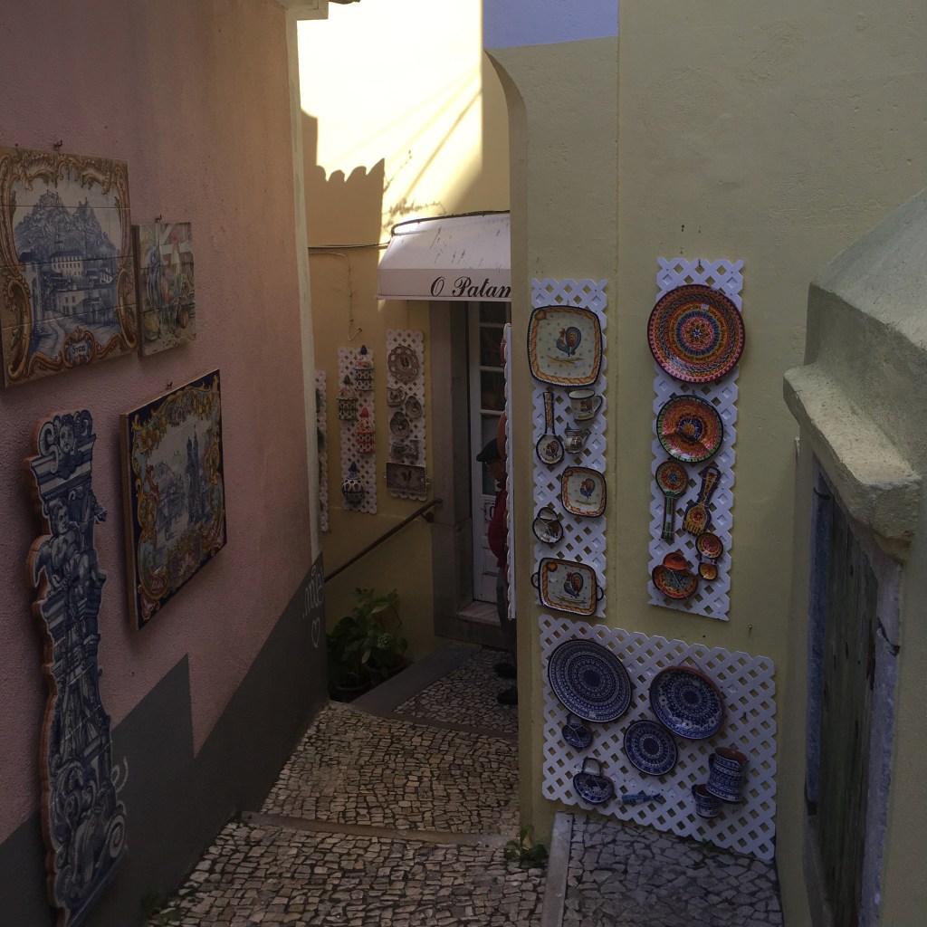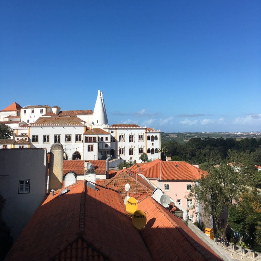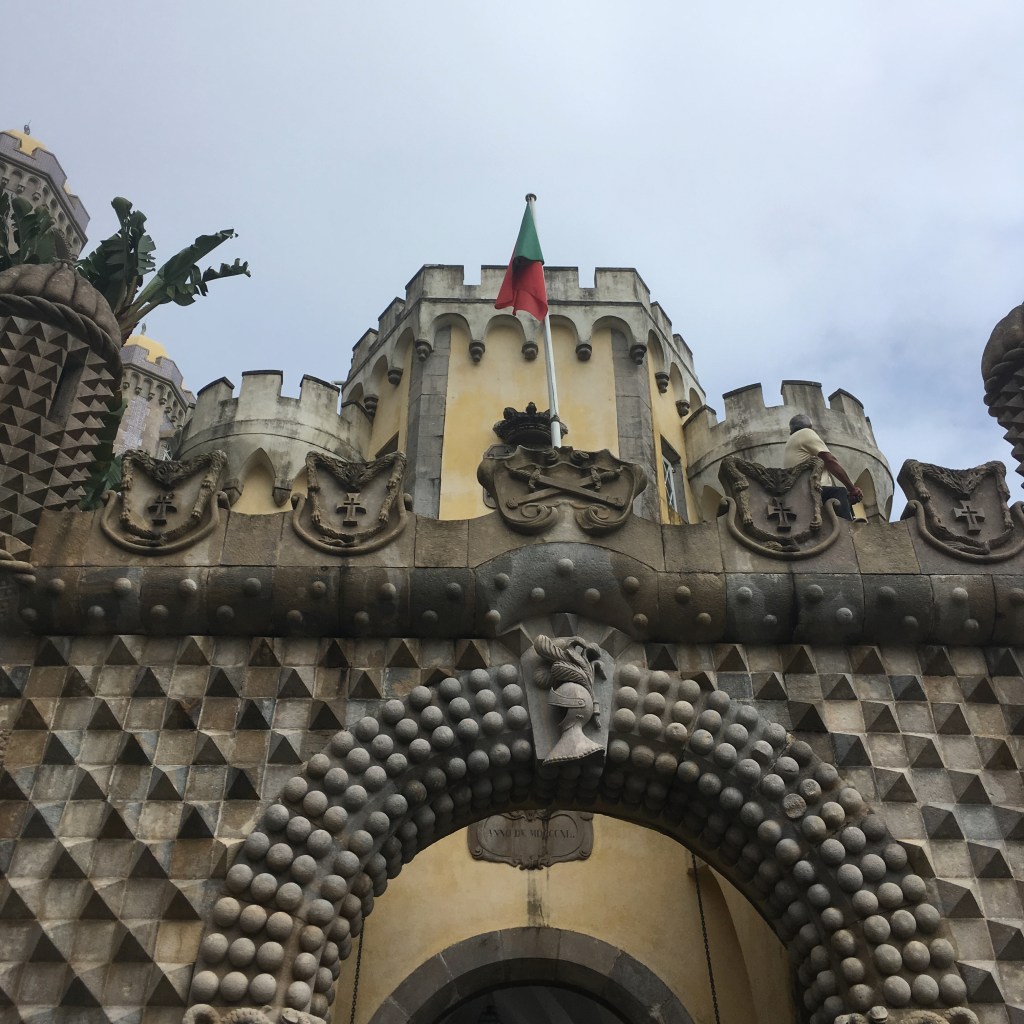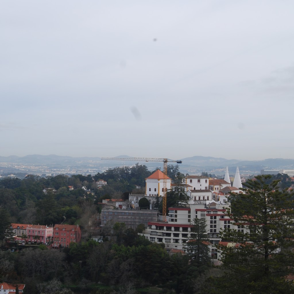 Palácio da Pena – didžiulis eklektiškos architektūros ir ryškių spalvų statinys, iškilęs ant ganėtinai aukštos kalvos virš miestelio stogų. Pirmą kartą pamačiusi šiuos rūmus pakrikštijau juos Candy Crush (toks spalvotas mobiliųjų telefonų žaidimas, kurį tuo metu aktyviai žaidžiau) pilimi.