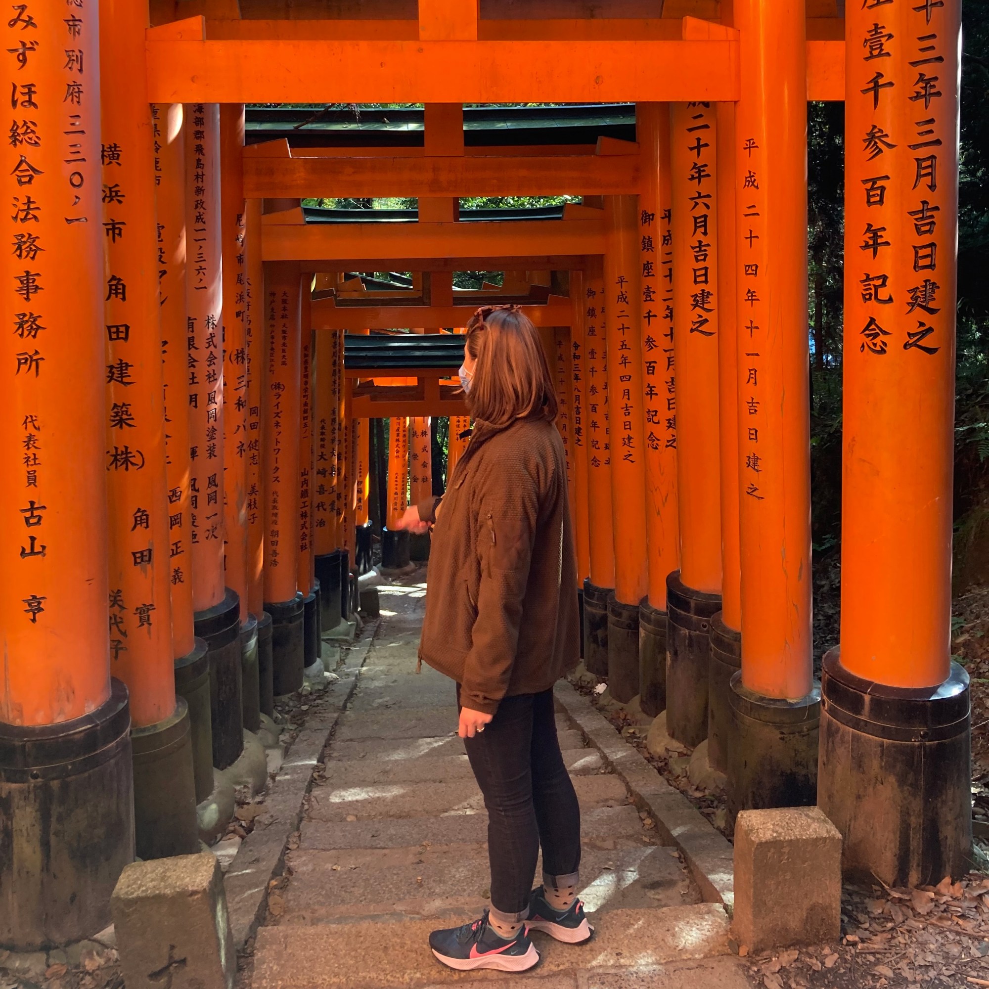 Japonija buvo turbūt paskutinė šalis visame pasaulyje, atsisakiusi koronaviruso ribojimų. Tiesa, kaukės ten iki šiol yra vienas pagrindinių aksesuarų. Mūsų lankymosi metu kaukės buvo reikalingos tuomet, kai buvome viduje – viešajame transporte, bendrosiose erdvėse viešbučiuose, laukiant maisto restoranuose ir pan. Tačiau patys japonai dažniausiai kaukių nenusiima net lauke. Tad būdami didesniuose žmonių susibūrimuose (pvz., su minia eidami per Shibuya perėją) kaukes užsidėdavome ir mes.