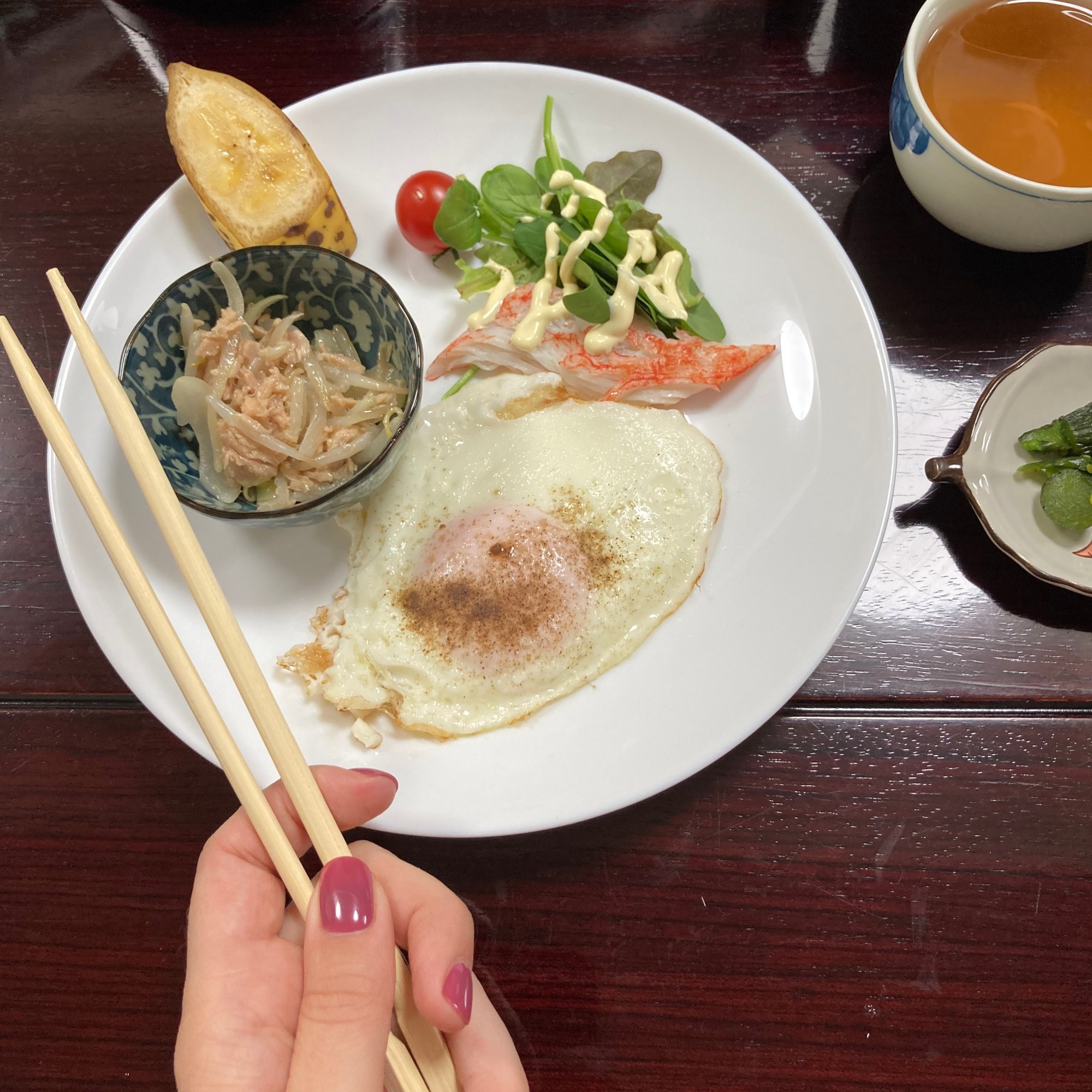 Kelionės pradžioje šiek tiek stebėjomės ryžiais ir miso sriuba pusryčiams, o štai kelionės pabaigoje jau nebeįsivaizdavome pusryčių be šių dalykų. Smagu ir tai, kad prie ryžių dažnai gaudavome daug lėkštučių su įvairiai apdorotomis daržovėmis, nedidelių kąsnelių mėsos ar pan. dalykų. Tuomet gali rankioti maistą po gabalėlį ir eksperimentuoti su skoniais. Pavalgyti užtrunka ilgiau, bet skanu, tad ir laiko negaila.
