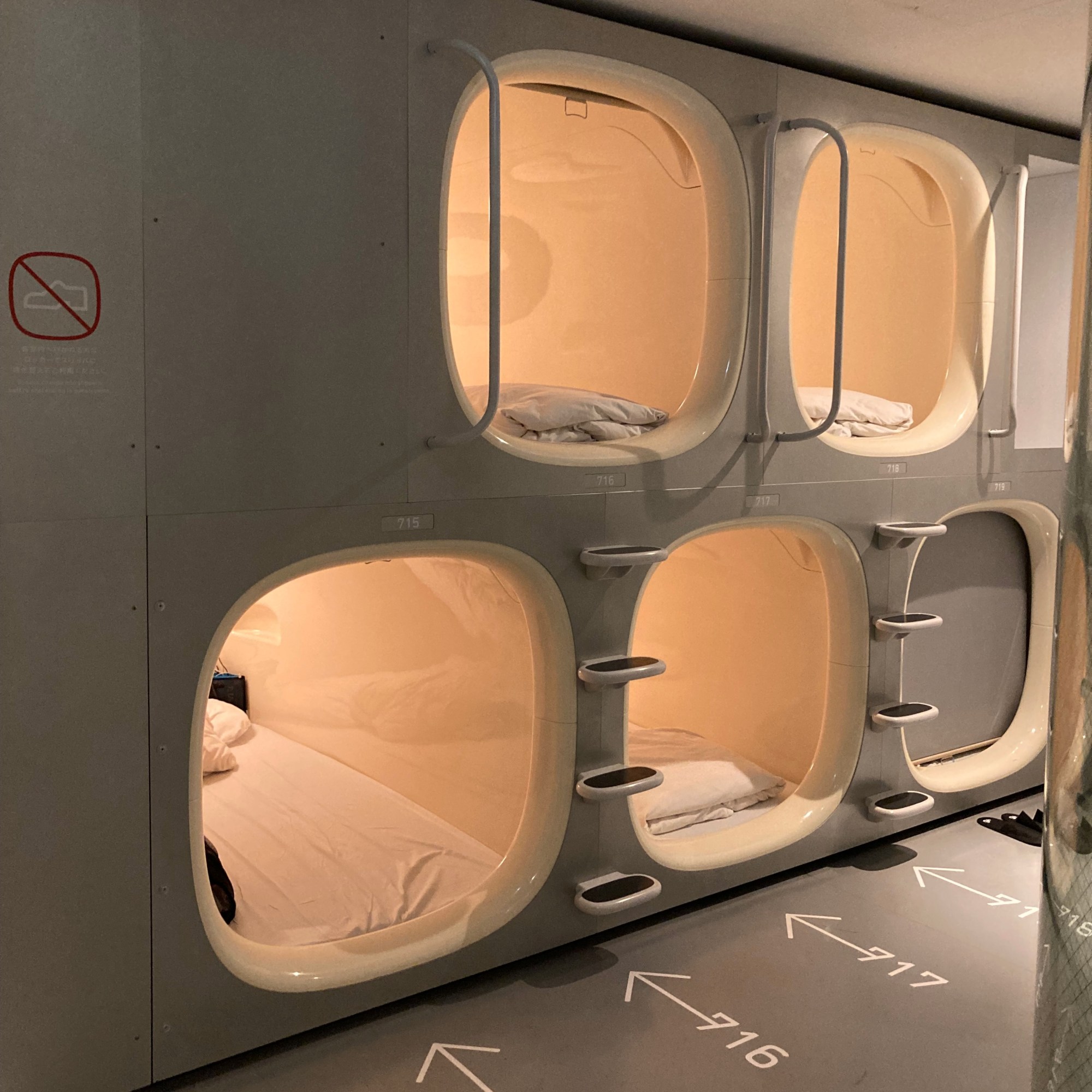 Tokyo išbandėme ir kapsulinį viešbutį. Nors miego urvelis iš šono gali atrodyti klaustrofobiškai, man jame buvo visai jauku. Pasirinktame viešbutyje vyrai ir moterys apsistoja atskiruose aukštuose. Daiktai ir batai paliekami specialioje spintelėje, nes kapsulėje jiems tikrai nebus vietos. Kapsulė užsidaro iš vidaus nuleidžiama pertvarėle, kuri man buvo panaši į roletą ant lango. Tad bijantiems pašalinių garsų verta turėti ausų kamštukus.