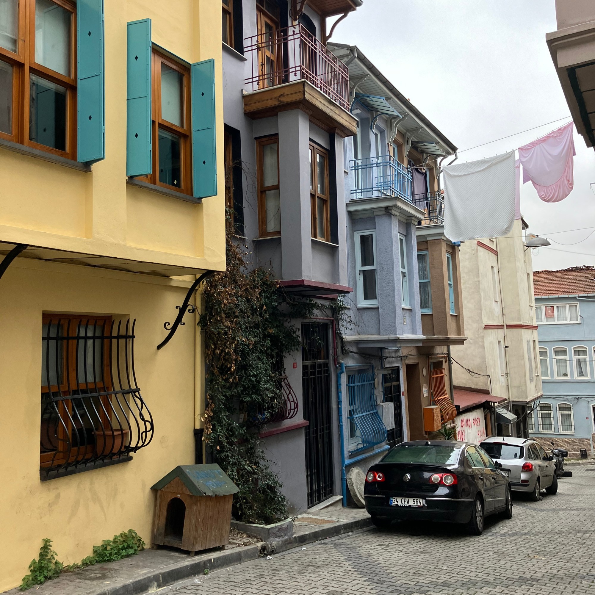 Kitas kelionės tikslas – Balat rajonas, iki kurio pavažiavome viešuoju transportu. Šis rajonas yra užkariavęs Instagram’ą savo spalvotais namukais, hipsteriškomis kavinukėmis ir siauromis gatvelėmis, kuriose ant tarp namų pakabintų virvių džiūsta vietinių gyventojų skalbiniai.