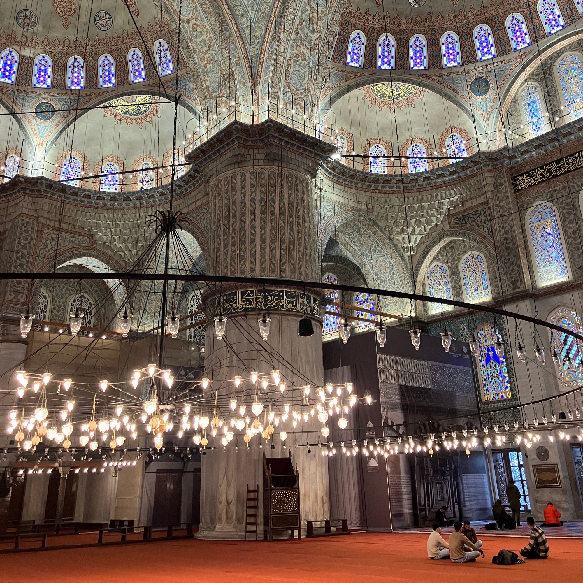 Pirmasis ryto vizitas – Sultono Ahmento mečetė, įprastai dėl savo interjero spalvos vadinama Mėlynąja mečete. Iš pradžių užsukome pasižvalgyti po ganėtinai didelį jos kiemą, o tuomet per turistams skirtą įėjimą užėjome į vidų. Kaip reikalauja mečetės lankymo taisyklės, teko nusiauti batus, o man dar ir prisidengti galvą (neturint kuo tai padaryti, prie įėjimo galima gauti skarą).