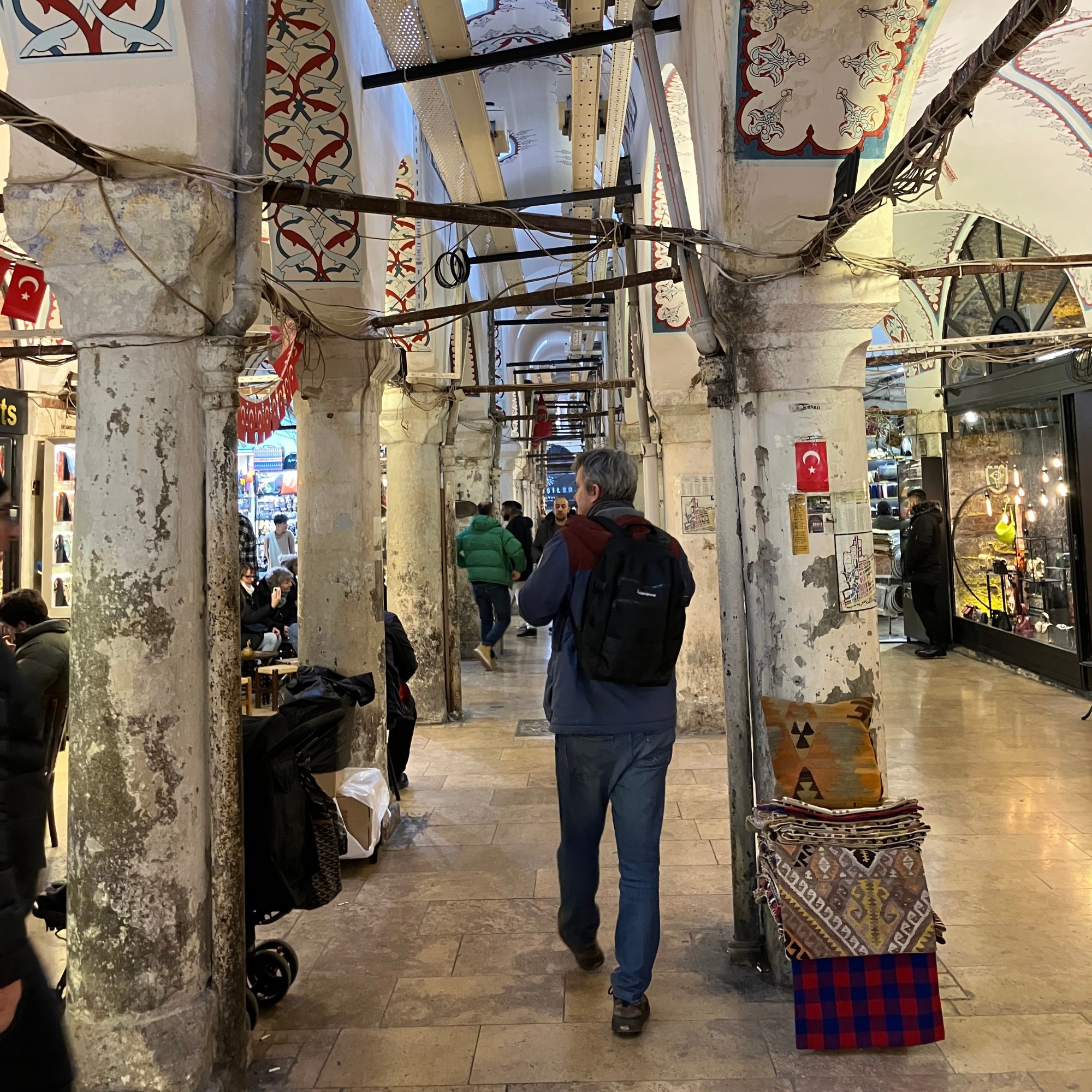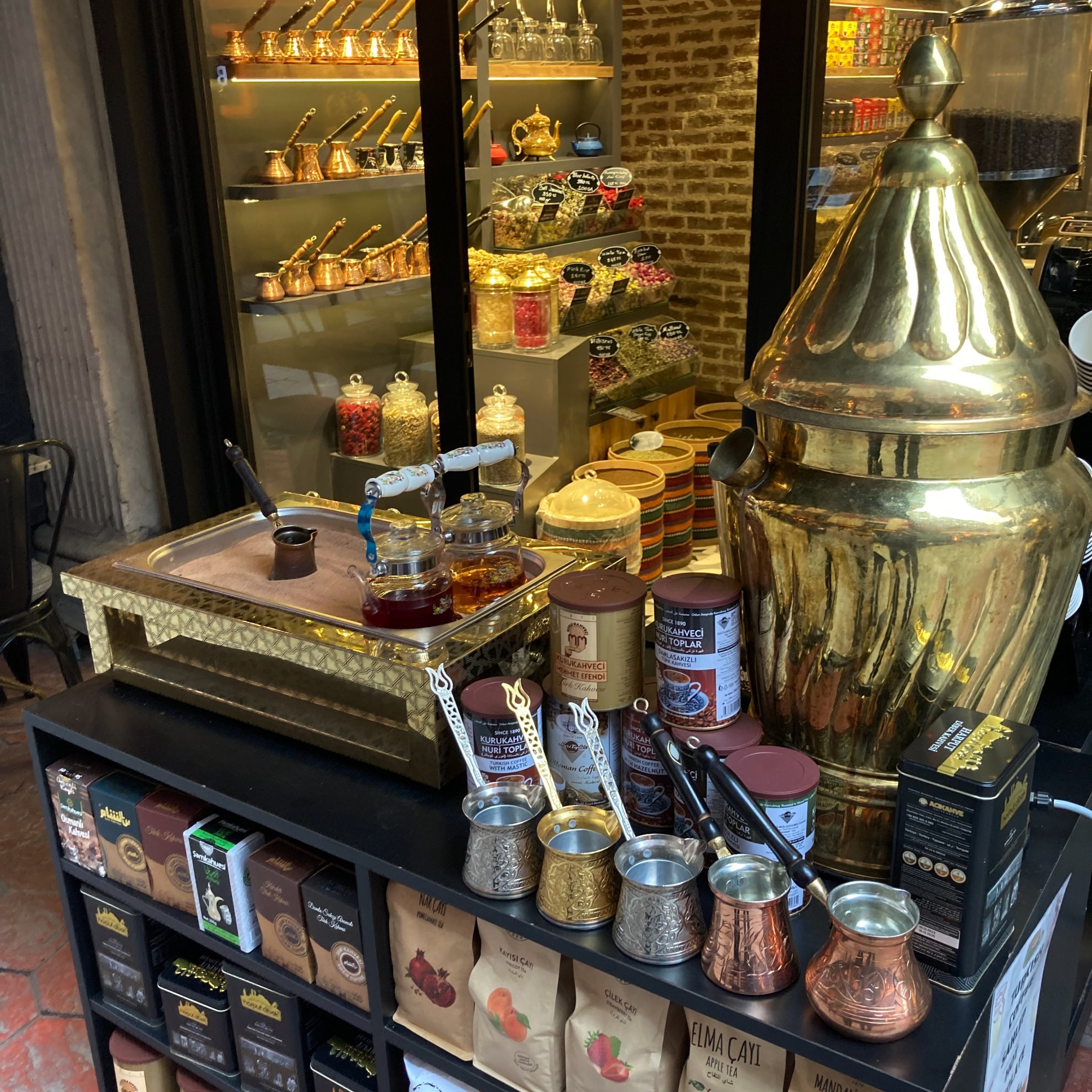 Kadangi Didžiajame turguje neplanavome nieko pirkti, pasižvalgėme keliose jo sekcijose (didžiausią įspūdį paliko juvelyrika ir vyrukai, čia pat vietoje gaminantys sidabrinius papuošalus), prisėdome išgerti arbatos ir judėjome toliau link Egiptietiško arba kitaip vadinamo Prieskonių turgaus. Jame jau šiek tiek pasileidome plaukus ir pasirinkę patikusius prekybininkus prisipirkome lauktuvių į namus – kavos pupelių, saldumynų ir prieskonių. Mainais buvome pavaišinti arbata ir skanėstais. Tiesa, už pirkinius sumokėjome daugiau nei 2000 lirų, kas vis dėlto nebuvo maža pinigų suma.