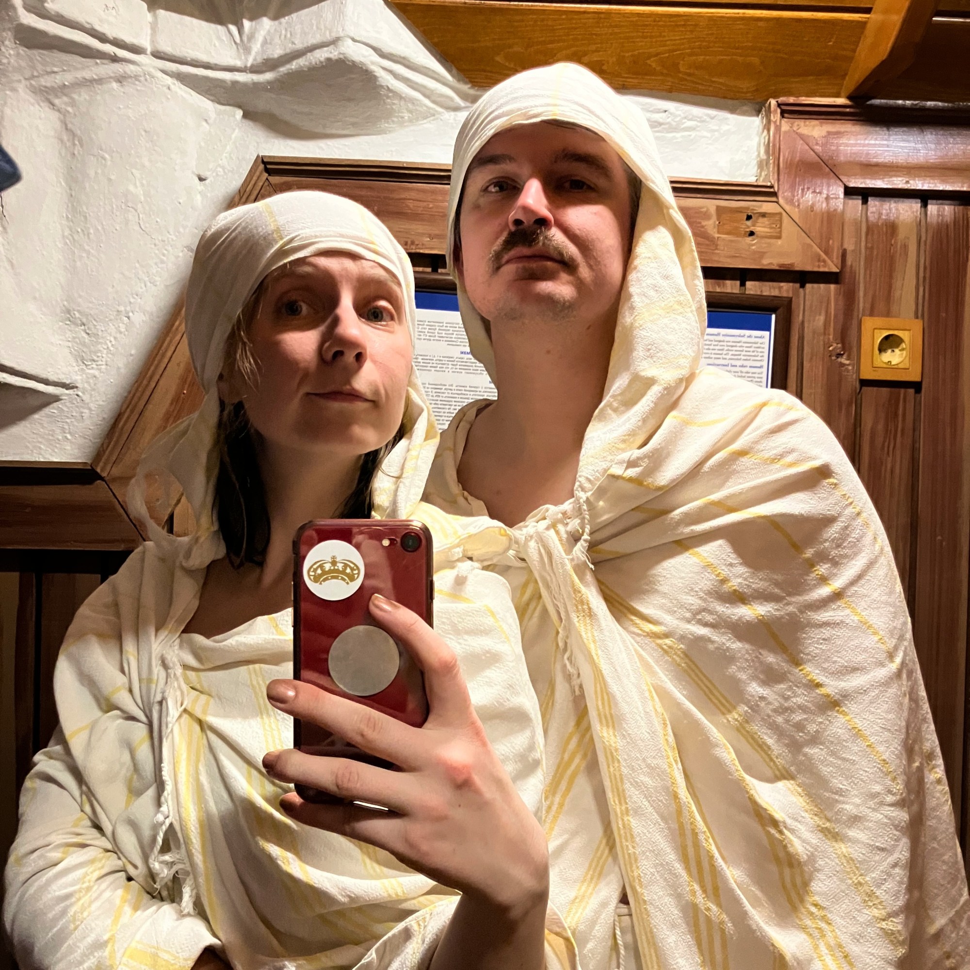 Kai jau sušilome, į šiek tiek privatesnę pirties patalpą mus abu nusivedė du pirtininkai – buvome nušveisti aštriomis kempinėmis, tuomet paguldyti ant akmeninio suolo ir padengti karšta muilo puta (žinau, skamba keistai, jautėsi lygiai taip pat keistai, bet maloniai) ir pamasažuoti. Beje, masažas tikrai nebuvo švelnus, jautresnius taškus paspaudė tikrai skaudžiai. Tada buvome dar kartą nuprausti ir išlydėti iš pirties patalpos. Ten gavome sausus rankšluosčius, į kuriuos susivyniojome nusirengę pirčiai skirtus drabužėlius, o pirtininkas dar papildomai mus suvystė į kelis medvilnės sluoksnius, kad nesušaltume besiilsėdami vietiniame priepirtyje, kur galėjome išgerti arbatos ar kitokio pasirinkto gėrimo.