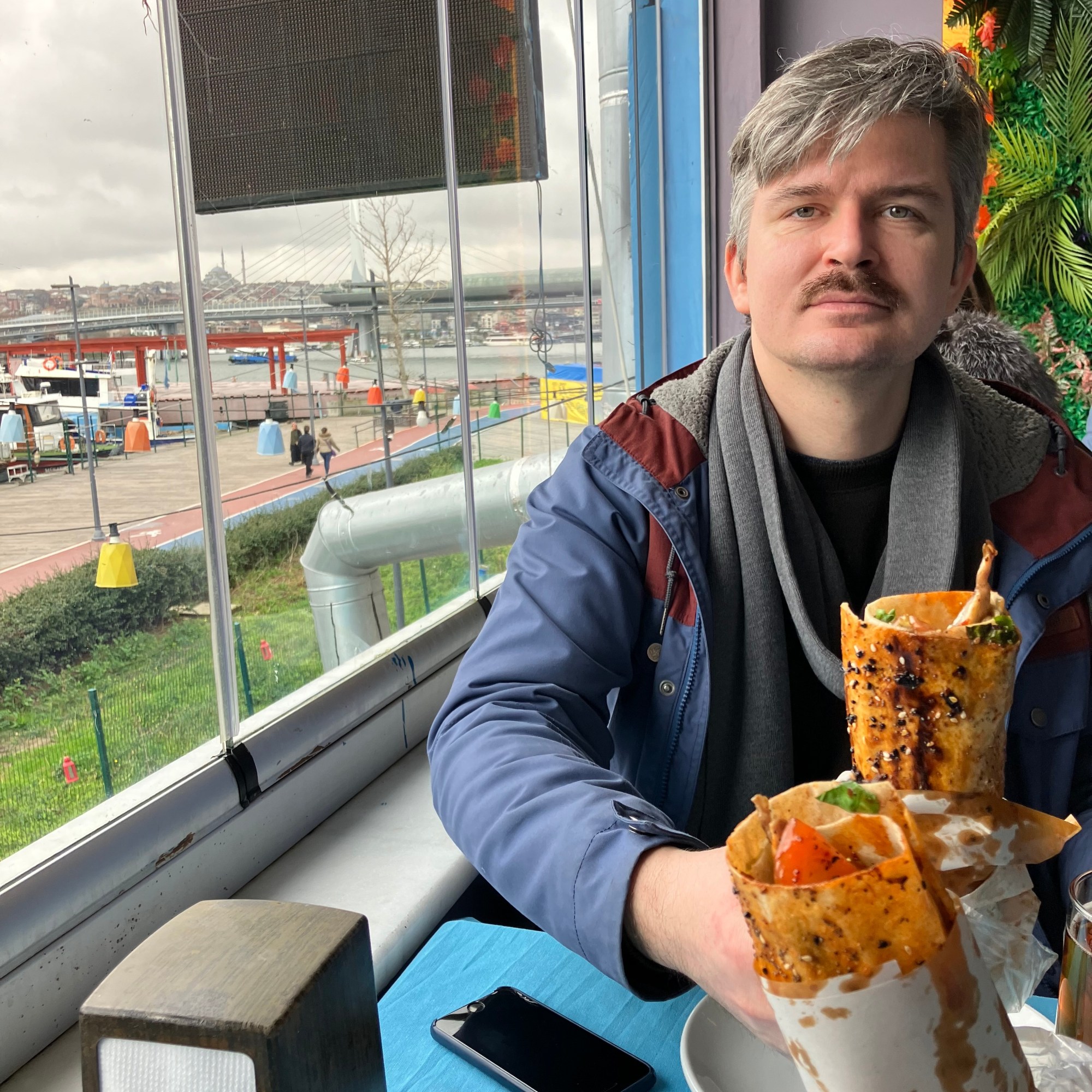 Pirmąją dieną nepavyko suvalgyti balik ekmek – paprastai tariant, žuvies kebabo, tad po turgaus išėjome jo ieškoti. Nors Galata tilto apačioje yra visa eilė restoranų, kviečiančių valgyti šį patiekalą būtent pas juos, mes ėjome į Orijaus kelionėse parodytą vietą – Karakoy pusėje esantį Super Mario restoraną (tiesa, pakeliui matėme ir daugiau panašaus pavadinimo užeigų, tikrąją vietą atpažinau iš vaizdų, parodytų laidoje).