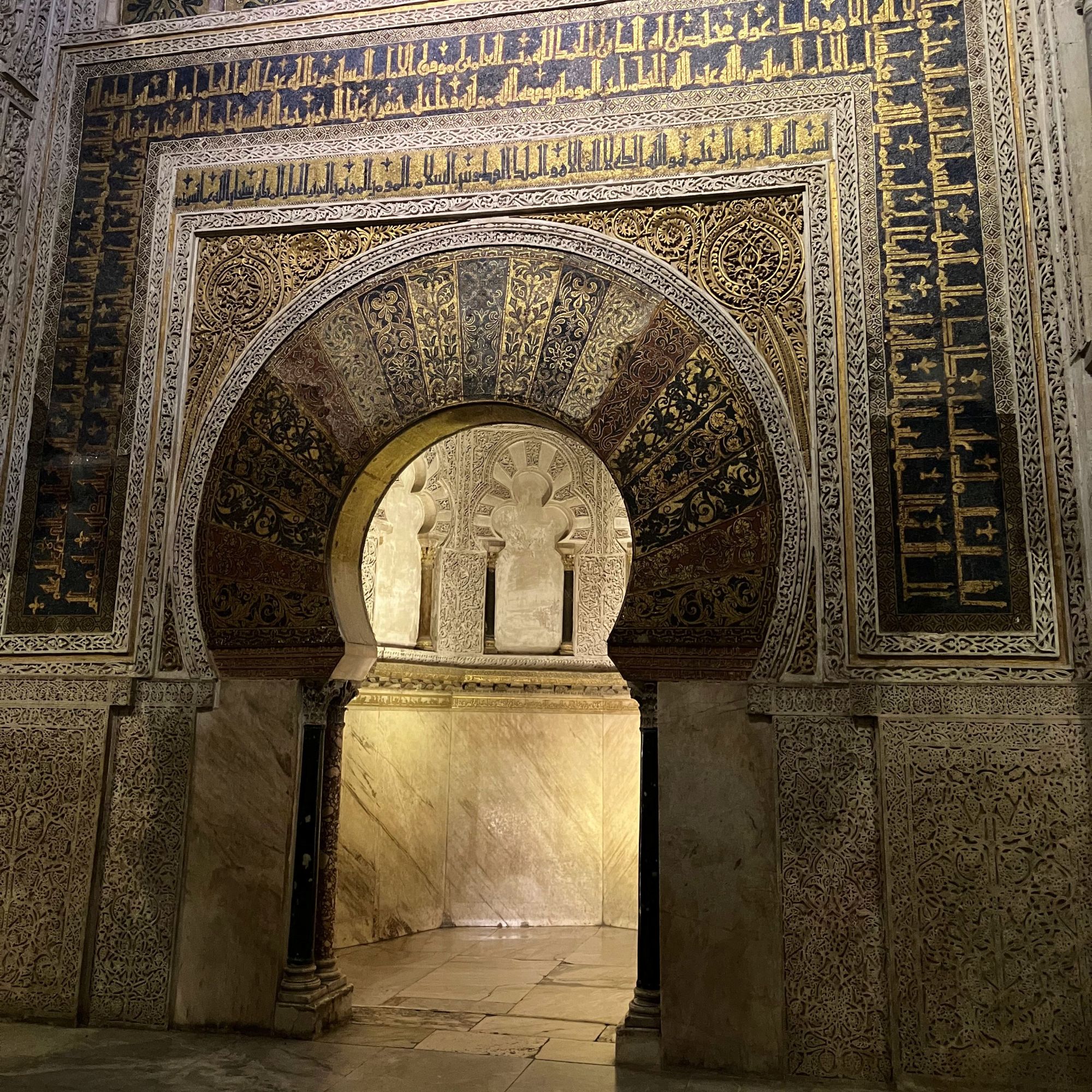 Įėjus į katedrą pasitinka didžiulė erdvė, pilna raudonai paspalvintų arkų, kurios vis ilgiau žiūrint pradeda kurti optines iliuzijas ir užhipnotizuoja. Pastato viduryje įterpta bažnyčios erdvė, kuri taip pat ganėtinai įspūdinga, bet prieš musulmoniškąją dalį vis tik nublanksta.