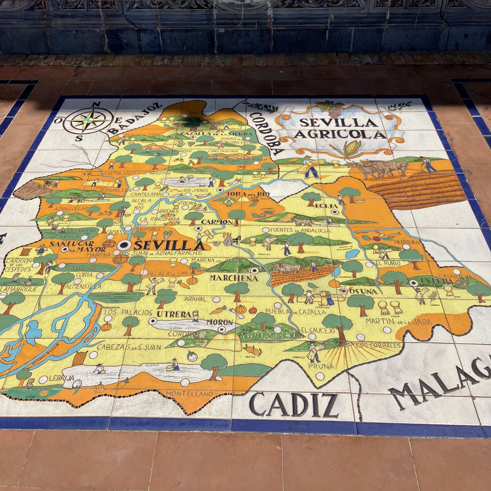 Plaza de España – Ispanijos aikštė – viena įspūdingiausių Sevilijos vietų, kurioje pristatomos visos Ispanijos provincijos. Jų simboliai, žemėlapiai ar kitokie konkrečias vietoves atspindintys paveikslėliai sudėlioti iš spalvotų plytelių.
