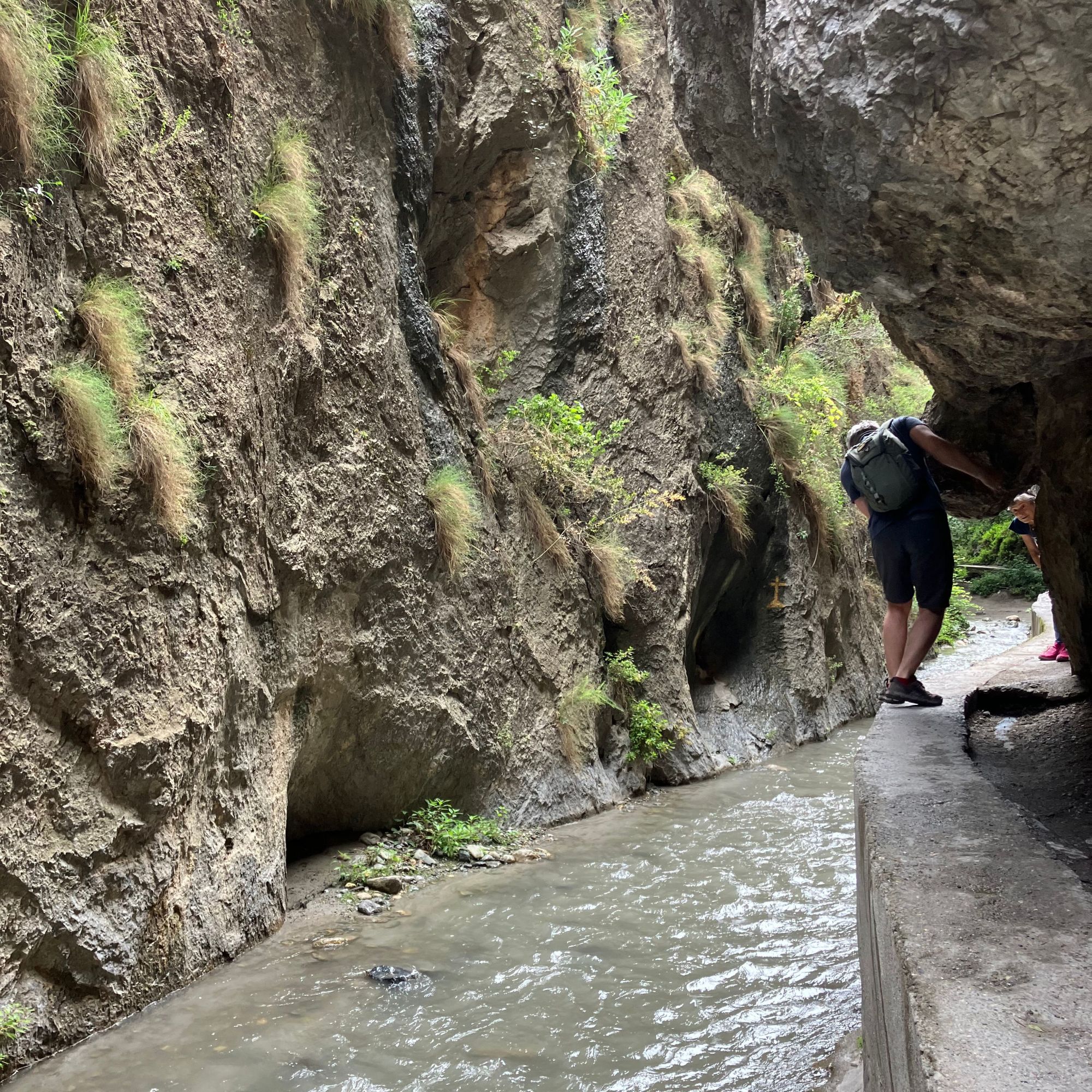 Granada yra Siera Nevada kalnų papėdėje, tad vos išvažiavus iš miesto jau galima vaikščioti įvairaus sudėtingumo kalnų takeliais. Mes pasirinkome Ruta de los Cachorros de Monachil trail’ą, kuris, pasirodo, yra ganėtinai populiarus dėl įspūdingų vaizdų – upės tarpeklio aukštomis akmeninėmis sienomis ir kabančių tiltų.